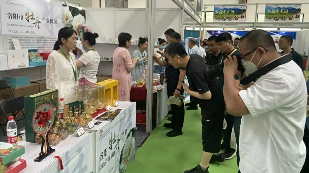 洛阳市林业局率领洛阳代表团参展,河南省林业局产业中心主任肖武奇等一行领导走访洛阳牡丹花都酒业有限公司展位,品鉴牡丹花酒,并给出优质好评。洛阳市牡丹产业部门张蓉辉局长在展区向肖武奇主任以及客商推介牡丹花酒,并协助洛阳牡丹花都酒业有限公司展会负责人与客商进行合作洽谈。